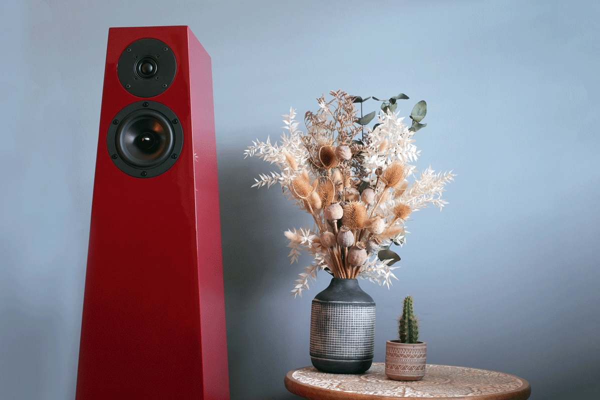 FFION is a floorstander with a uniquely tapered shape which allows it to hide a generous 200mm (8") bass driver while the slim upper cabinet permits stereo imaging more akin to a compact standmount.